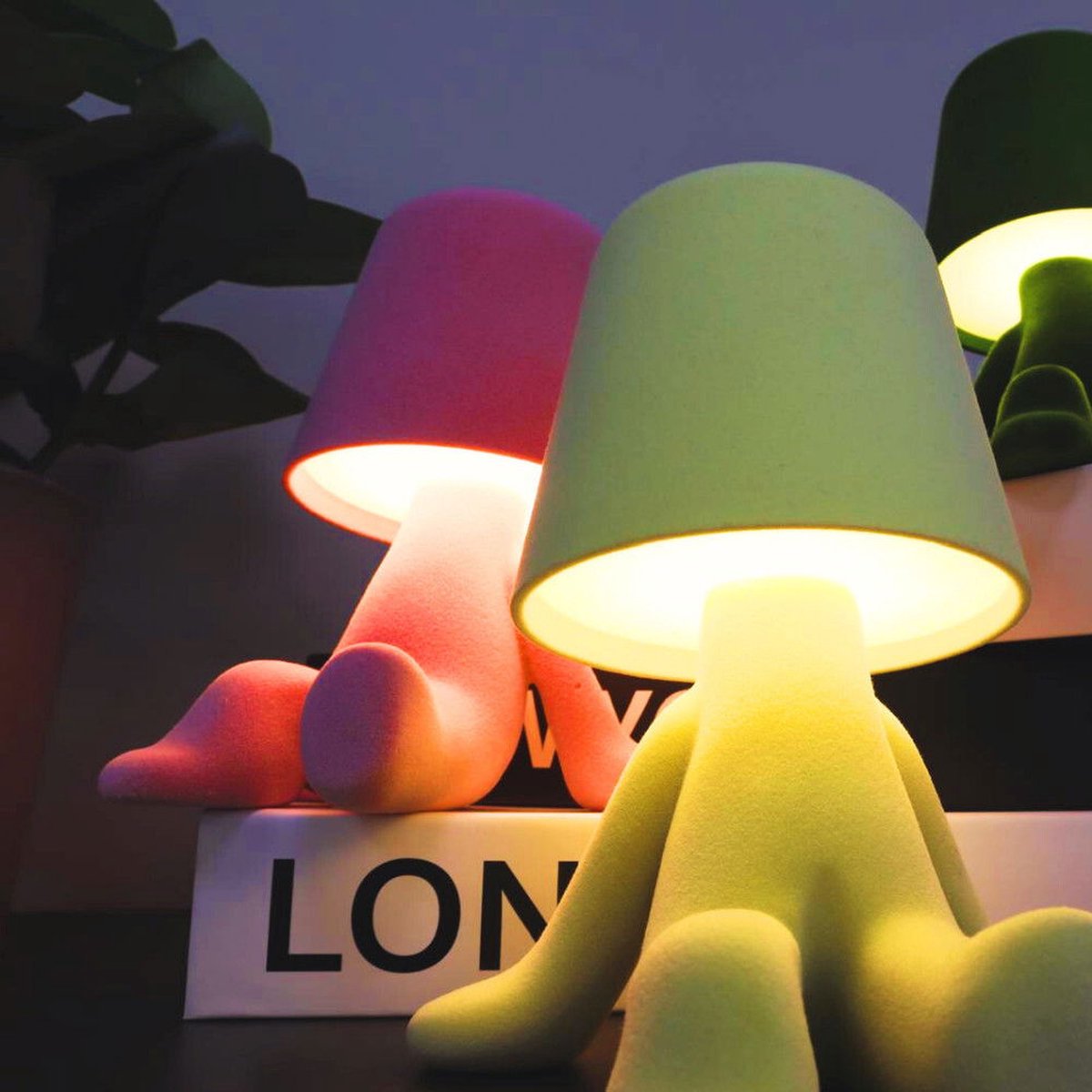 Ontdek de dimbare Fonkel Denker LED Tafellamp in geel velours. Oplaadbaar via USB-C, stijlvol en handig! Bestel nu bij Trending.nl!
