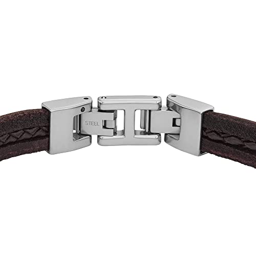 Op zoek naar een accessoire dat je outfit net dat beetje extra geeft? Check dan deze bruine leren armband van FOSSIL. Met een lengte van 21,3 cm en een breedte van 10,8 cm past hij perfect om de meeste polsen en geeft hij een stoere, maar stijlvolle vibe. Het hoogwaardige leer voelt fijn aan en ziet er tijdloos uit, ideaal voor zowel casual als nette looks.