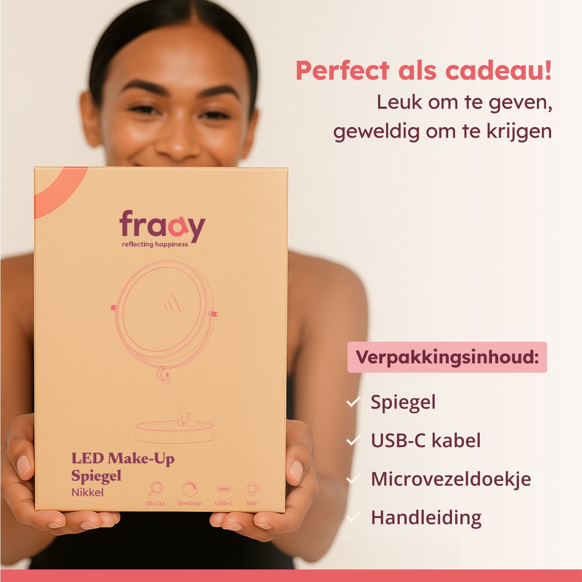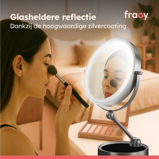 Ontdek de Fraay Make-up Spiegel met LED-licht en 10x vergroting. Ideaal voor make-up en scheren. Oplaadbaar en stijlvol! Bestel nu bij Trending.nl!
