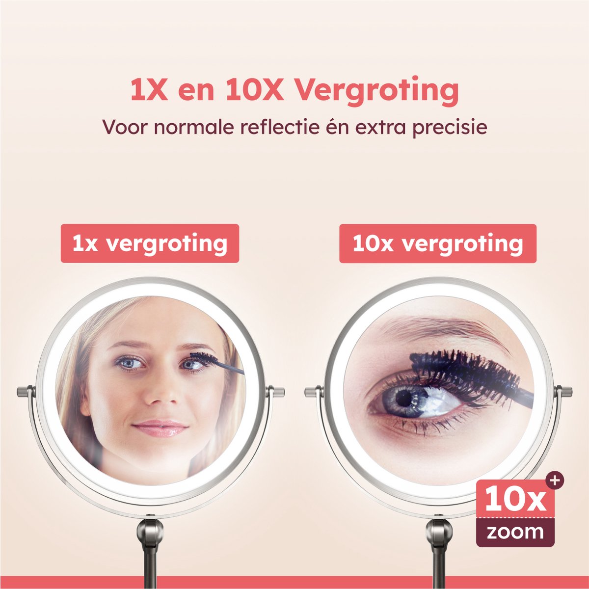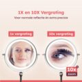 Ben je het zat om in een slecht verlichte badkamer je make-up te doen of te scheren met maar half zicht? Deze Fraay Make-up Spiegel met LED-verlichting is je nieuwe beste vriend. Met 10x vergroting zie je elk detail haarscherp, of je nu je wenkbrauwen epileert of een strakke eyeliner trekt. De ingebouwde LED-lampen zorgen voor een natuurlijke lichtval, zodat je altijd de juiste kleuren ziet.