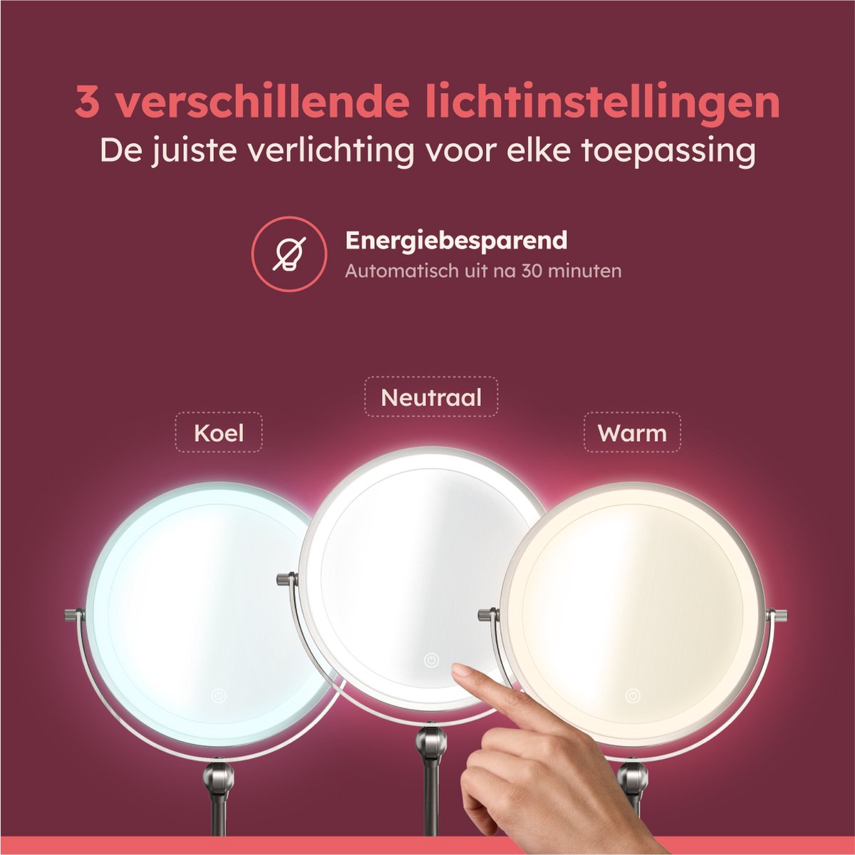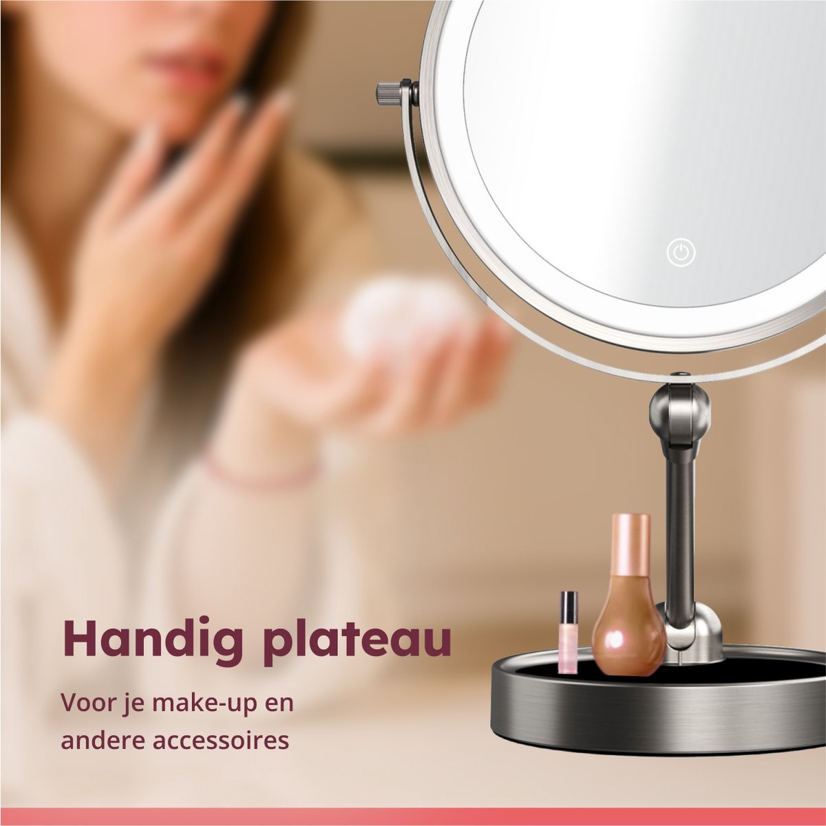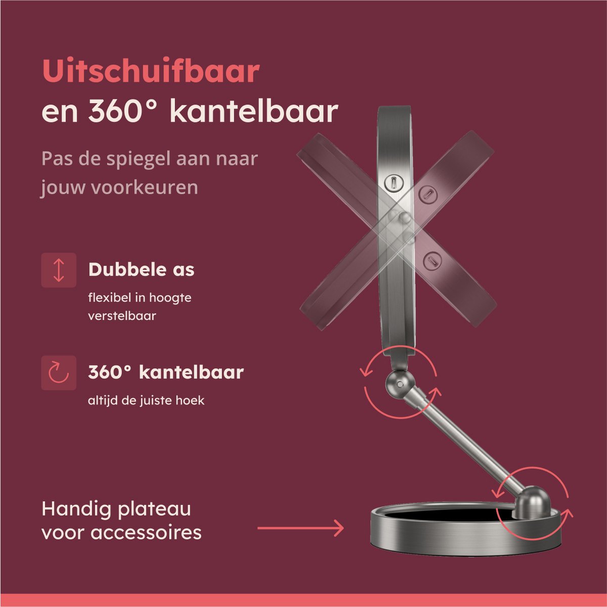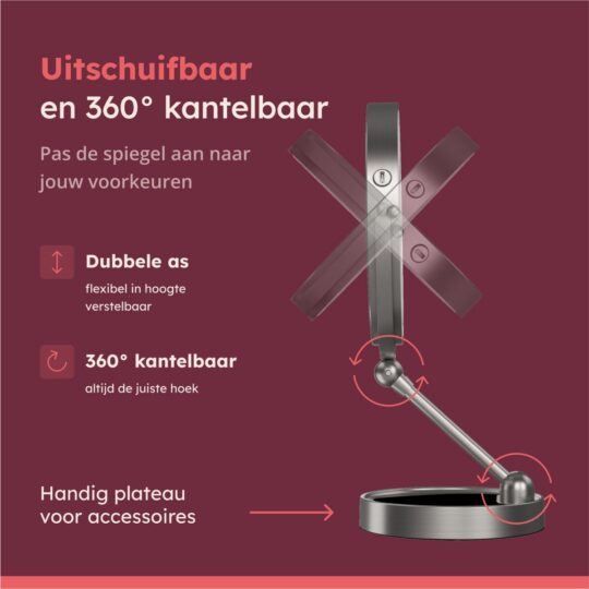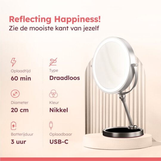 Wat deze vergrootspiegel extra handig maakt, is dat hij oplaadbaar is. Geen gedoe met batterijen, gewoon even aan de lader en je bent klaar. Gebruikers zijn vooral te spreken over het strakke nikkel design dat in elke badkamer past. Of je hem nu als scheerspiegel of make-up tool gebruikt, hij staat stevig en werkt super.