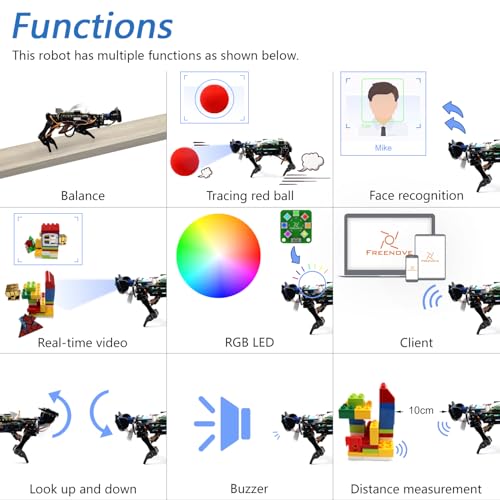 Ben je klaar om je eigen slimme robotmaatje te bouwen? Met de Freenove Robot Dog Kit voor Raspberry Pi (5, 4 B, 3 B+, B, A+) creëer je een robot hond die kan lopen, zichzelf in balans houdt en zelfs gezichten herkent. Superhandig voor techliefhebbers die houden van een uitdaging! Via de app bedien je alles, van bal-tracking tot ultrasone afstandsmeting. De kit komt met een camera en servo’s, maar let op: de Raspberry Pi zelf is niet inbegrepen.