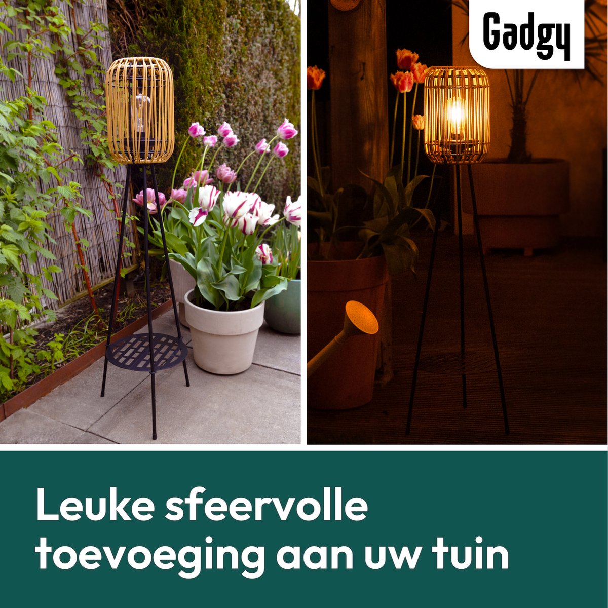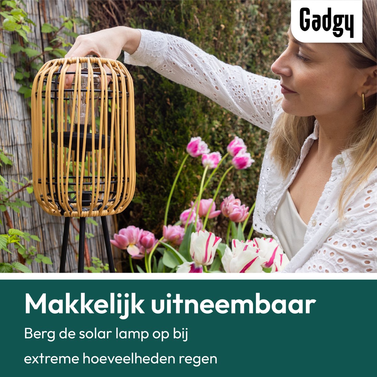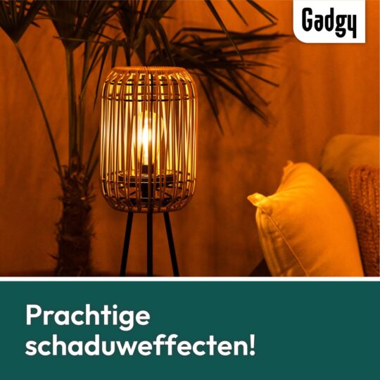 Ontdek de Gadgy Solar Tuinverlichting: stijlvolle rattan lamp op zonne-energie voor terras en tuin. USB-oplaadbaar en sfeervol! Bestel nu bij Trending.nl!