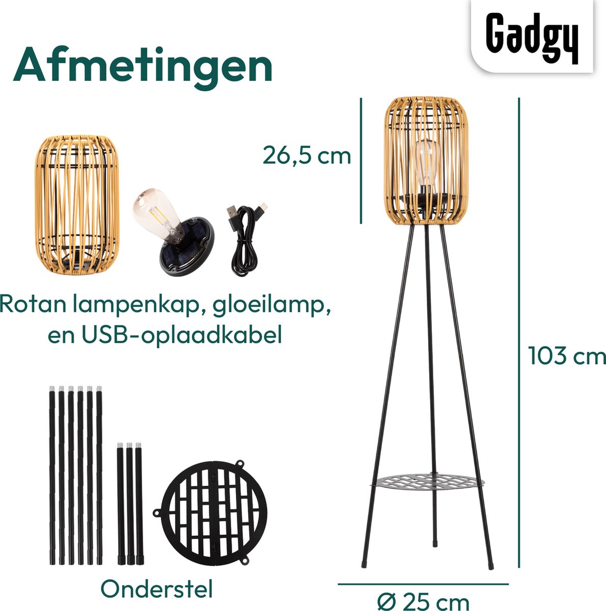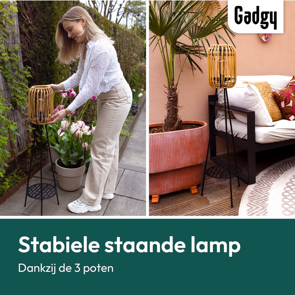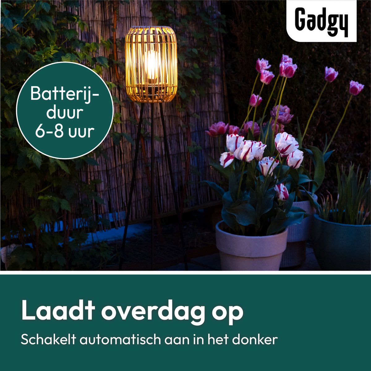 Ontdek de Gadgy Solar Tuinverlichting: stijlvolle rattan lamp op zonne-energie voor terras en tuin. USB-oplaadbaar en sfeervol! Bestel nu bij Trending.nl!