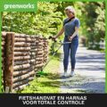 Ben je klaar met het gesleep met snoeren en benzine in de tuin? De Greenworks GD24X2BCBK4x Accu Bosmaaier is dé oplossing voor draadloos gemak. Met een krachtige borstelloze motor en een maaibreedte van 38 cm tackle je moeiteloos hoog gras en onkruid. Deze topper komt met twee 24V 4Ah accu’s, dus je hoeft niet halverwege te stoppen. Het fietshandvat en het meegeleverde harnas maken het werken nog comfortabeler, zelfs tijdens lange sessies.