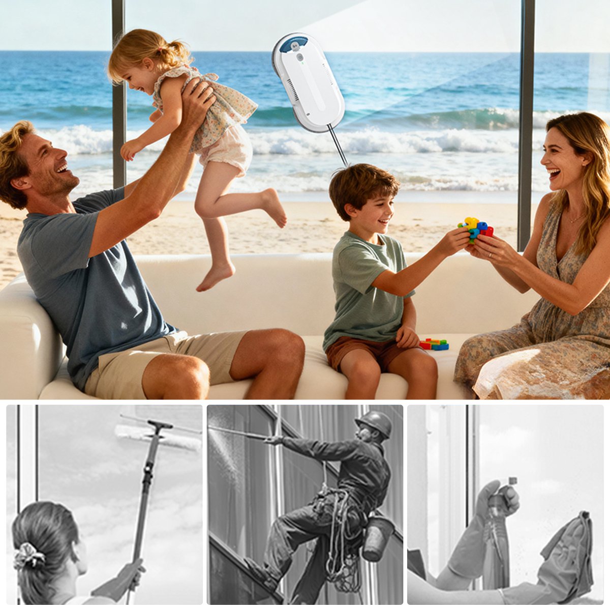 Bespaar tijd, moeite en glazenwasserkosten. Haal de toekomst van schoonmaken in huis met de Grenintol Robot Ramenwasser en geniet elke dag van een kristalhelder uitzicht!