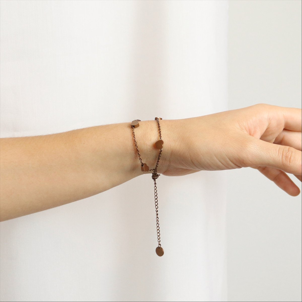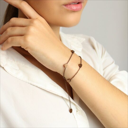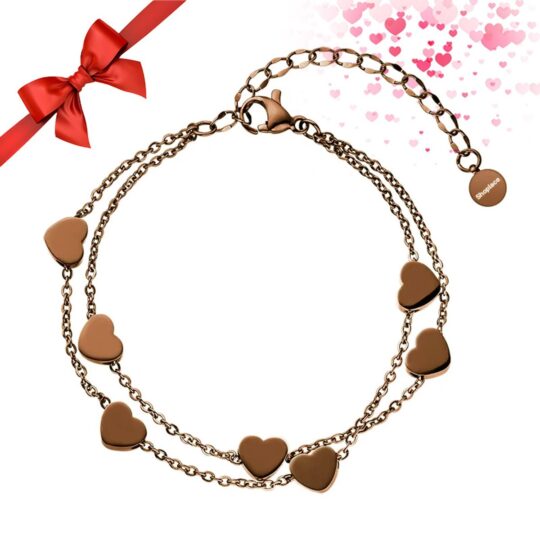 Op zoek naar een mooi en persoonlijk cadeau? De Shoplace hartjes armband voor dames is een schitterende keuze. Deze schakelarmband met subtiele hartjes straalt liefde en elegantie uit, perfect voor een speciale vrouw in je leven of gewoon om jezelf te verwennen. De armband in de kleur Coffee heeft een moderne, warme uitstraling die bij elke outfit past.