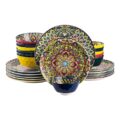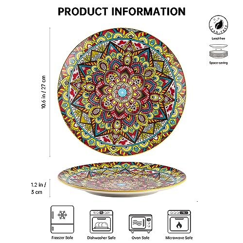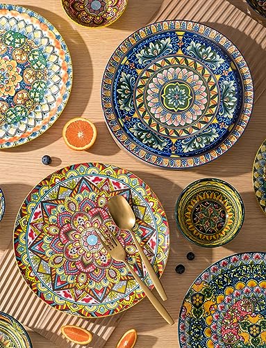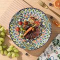Met de Henten Home bordenset haal je direct een vleugje Boheemse stijl in huis. Deze set van zes grote ronde borden (25,4 cm) is perfect voor ontbijt, lunch of een lekker dessert. Het kleurrijke patroon springt meteen in het oog en maakt elke maaltijd net een beetje feestelijker. Of je nu een casual brunch host of gewoon je dagelijkse maaltijd wilt opfleuren, deze borden zijn een echte aanwinst.