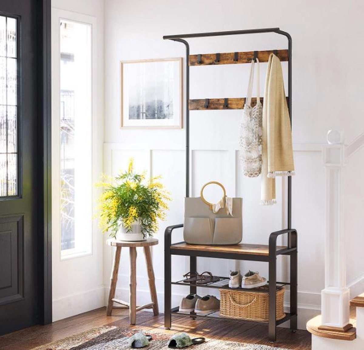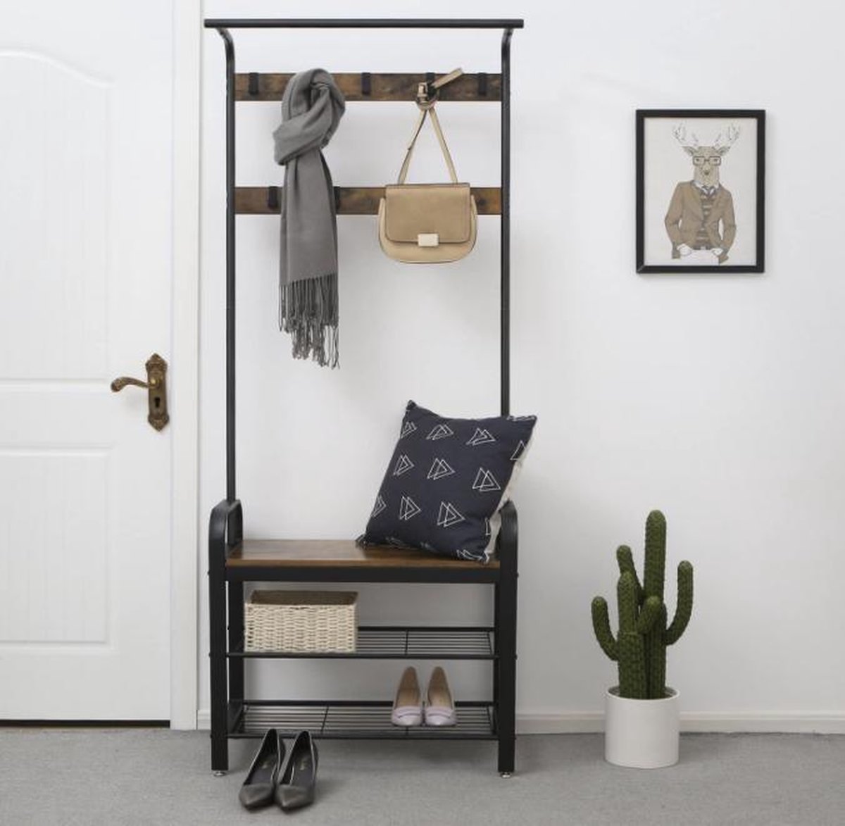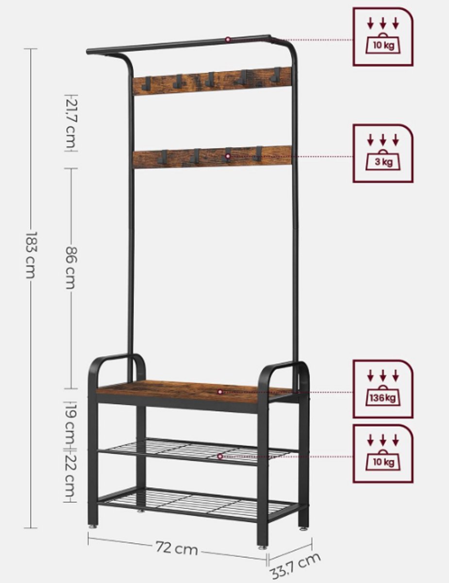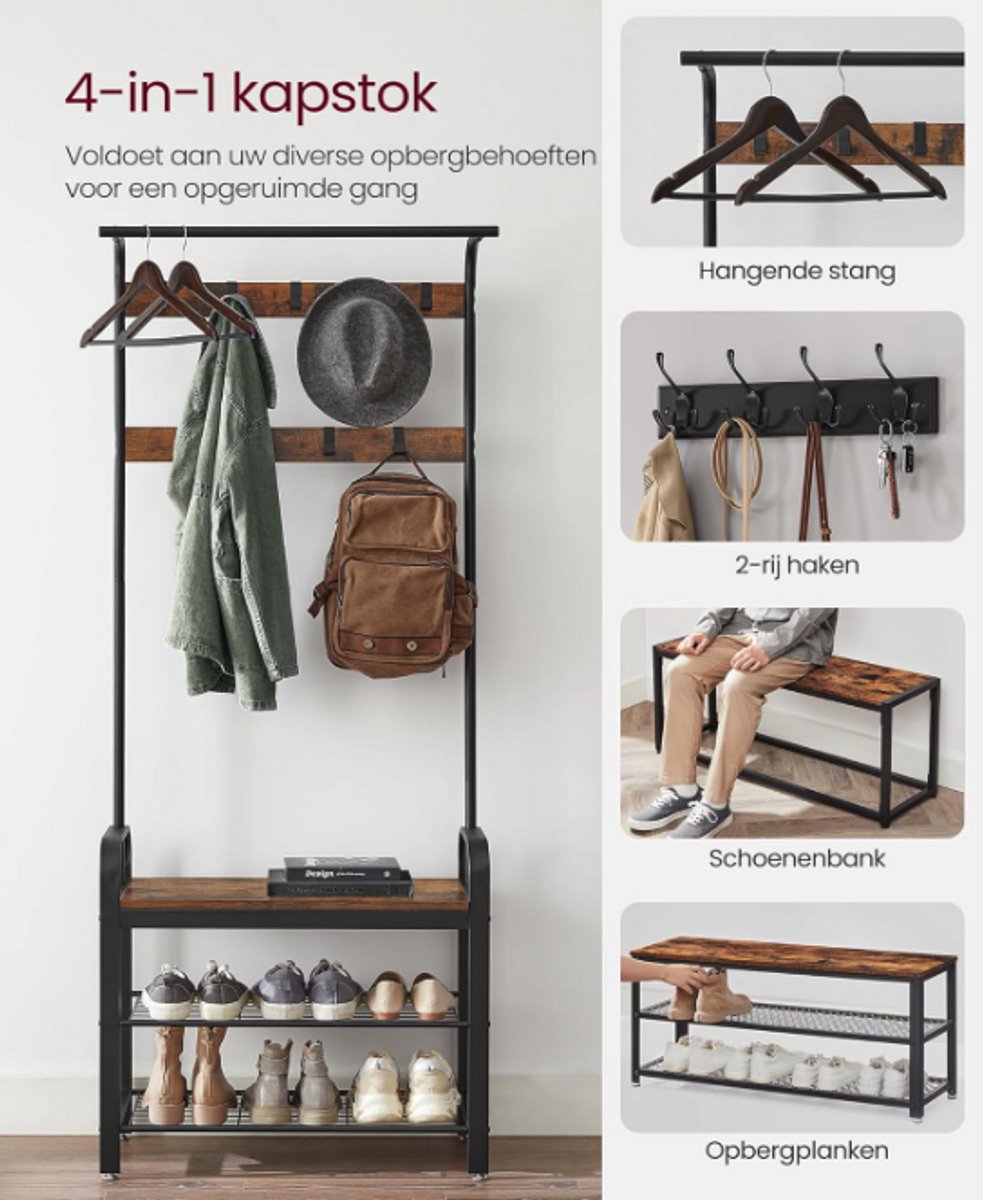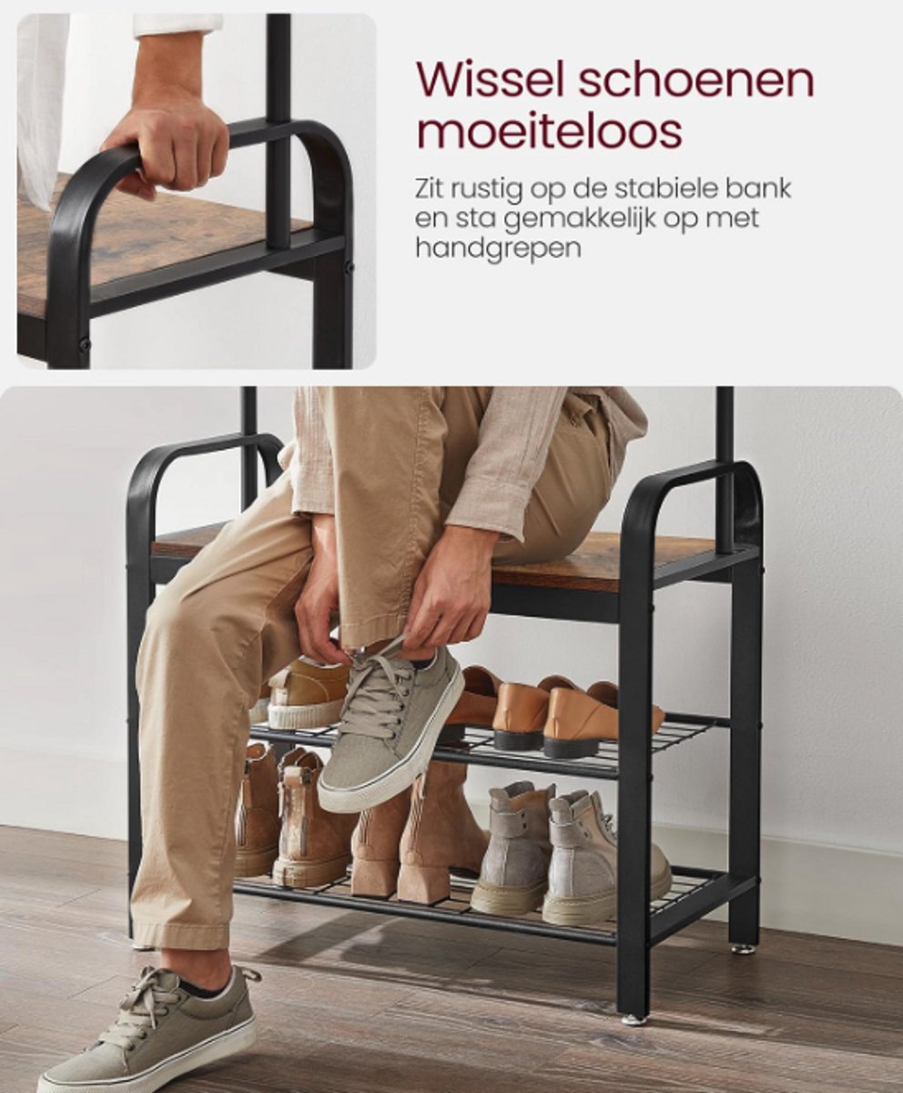 Ontdek de MAZAZU industriële kapstok met schoenenrek in bruin/zwart. Stijlvol, praktisch en ruimtebesparend. Bestel nu bij Trending.nl!