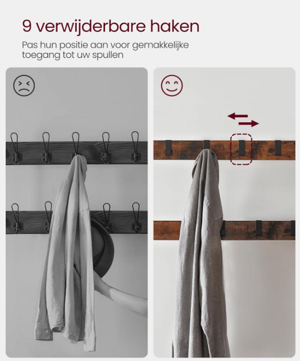Deze kapstok is gemaakt van robuust metaal en hout, wat zorgt voor een trendy uitstraling en langdurig gebruik. Gebruikers waarderen vooral het ruimtebesparende design en hoe makkelijk het in elkaar te zetten is. Perfect voor kleine ruimtes of als je gewoon van een strakke hal houdt. Kort gezegd, met dit meubel haal je functionaliteit en stijl in huis.