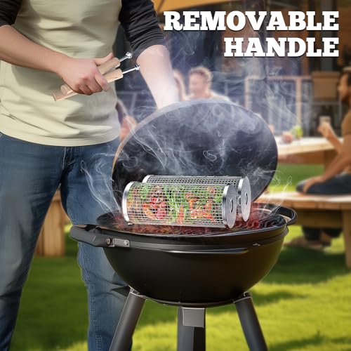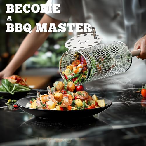 Ben je dol op barbecueën, maar is het gedoe met kleine groenten of garnalen op de grill een uitdaging? Dan is deze Ivtivfu grillmandenset echt iets voor jou! Deze set van 2 cilindrische manden (24 cm x 10 cm) rolt makkelijk over het rooster, zodat alles gelijkmatig gaart zonder dat het ertussendoor valt. Gemaakt van stevig roestvrij staal en met een fijn houten handvat om je handen te beschermen tegen de hitte. Gebruikers zijn enthousiast over hoe simpel het is om groenten en vis te grillen!