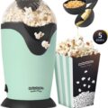Wat deze popcornmaker zo handig maakt? Hij heeft een krachtige 1200W motor, waardoor je razendsnel resultaat hebt. De meegeleverde maatlepel helpt je de juiste hoeveelheid korrels af te meten, en met de botersmeltlepel voeg je makkelijk een extra smaakje toe. Gebruikers zijn dol op het gemak en het retro design dat een vleugje nostalgie toevoegt aan elke keuken.