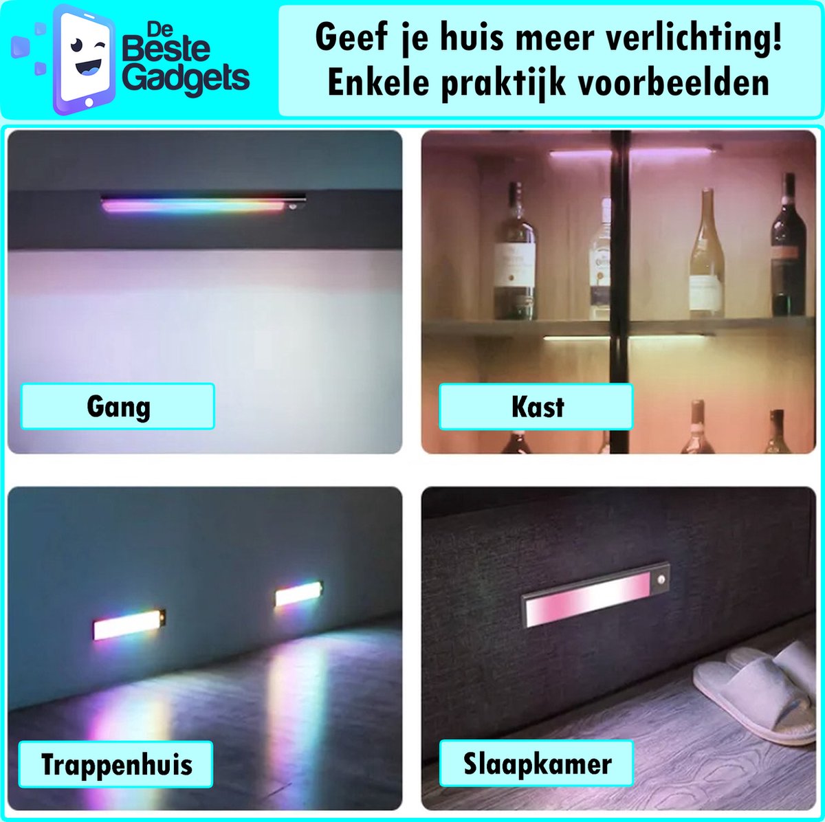 Ontdek slimme RGB LED kastverlichting (40 cm) met bewegingssensor. Perfect voor keuken of trap, energiezuinig en kleurrijk. Bestel nu bij Trending.nl!