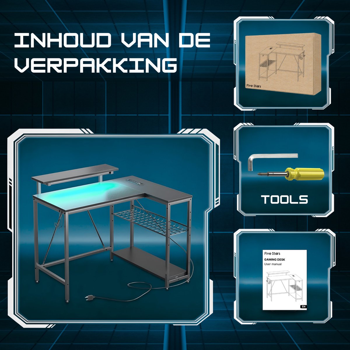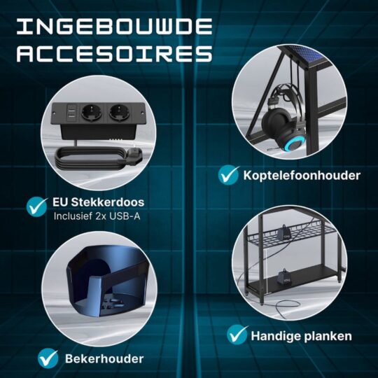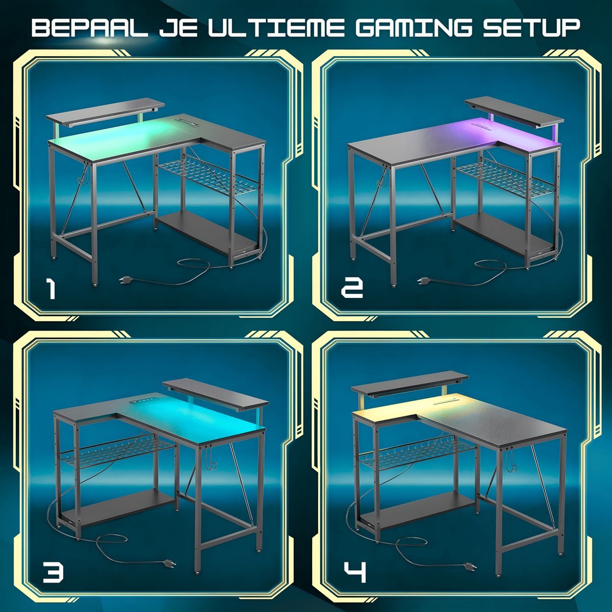 Even alles op een rijtje: dit L-vormige gamerbureau met LED is niet alleen praktisch, maar geeft je ruimte ook een flinke upgrade. Tijd om te gamen in stijl!