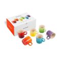 Ontdek de Le Creuset koffiemokken set in 6 regenboogkleuren. Duurzaam steengoed, 350 ml per mok. Perfect voor koffie of thee. Bestel nu bij Trending.nl!