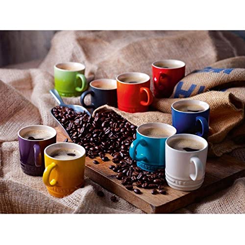 Breng kleur in je ochtendroutine met deze superleuke set van 6 koffiemokken van Le Creuset. Elke mok heeft een unieke tint, van warm kersenkleur tot fris groenblauw, waardoor je tafel meteen een vrolijke boost krijgt. Met een inhoud van 350 ml zijn ze ideaal voor je dagelijkse kop koffie of thee. Gemaakt van steengoed, dus ze kunnen wel tegen een stootje en blijven lang mooi.