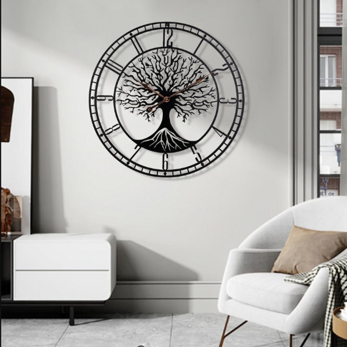 Op zoek naar een echte eyecatcher voor je woonkamer? Deze Levensboom Klok in zwart metaal combineert functionaliteit met een flinke dosis stijl. Het unieke stamboomdesign trekt meteen de aandacht en geeft je interieur een moderne, natuurlijke vibe. Perfect voor wie houdt van minimalistische decoratie met een twist.