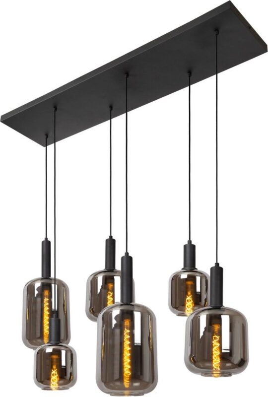 Op zoek naar een echte eyecatcher voor boven je eettafel of in de woonkamer? De Lucide ELISA hanglamp in fumé uitvoering is precies wat je nodig hebt. Met ruimte voor zes E27-lampen (niet inbegrepen) creëer je moeiteloos een warme, gezellige sfeer. Deze hanglamp combineert een modern design met een vleugje klassieke elegantie, dankzij de fumé afwerking die het licht prachtig filtert.