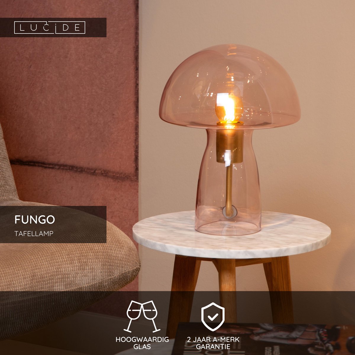 Gebruikers zijn dol op het unieke design van de Lucide FUNGO. Het roze accent maakt hem net wat gedurfder dan de standaard lampen, zonder dat het too much wordt. Let op: de lichtbron is niet inbegrepen, dus die bestel je er los bij.