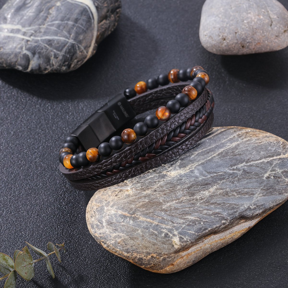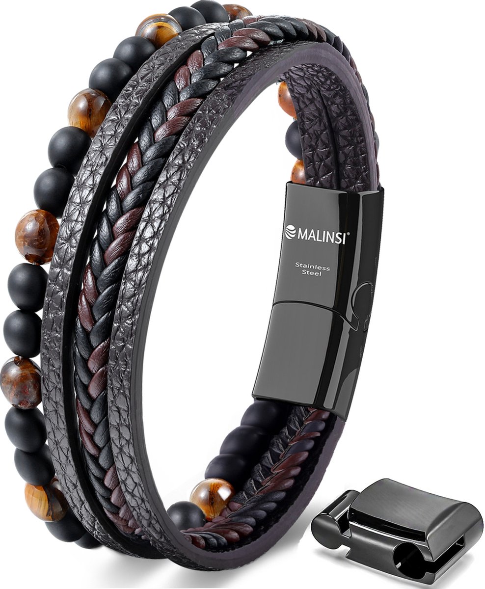 Ontdek de Malinsi® Heren Armband met Onyx Stone en bruin leer. Stijlvol, robuust en perfect voor elke look. Bestel nu bij Trending.nl!
