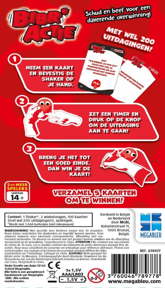 Megableu Bibr'Actie brengt gegarandeerd plezier in huis. Dus trommel je vrienden of familie op en kijk wie de meeste zelfbeheersing heeft!