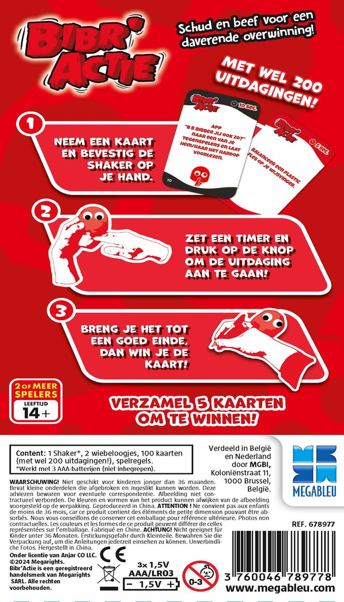 Ontdek Megableu Bibr’Actie: het hilarische partyspel met bibberende uitdagingen voor 2-6 spelers vanaf 10 jaar. Perfect voor familie en vrienden! Bestel nu bij Trending.nl!