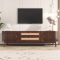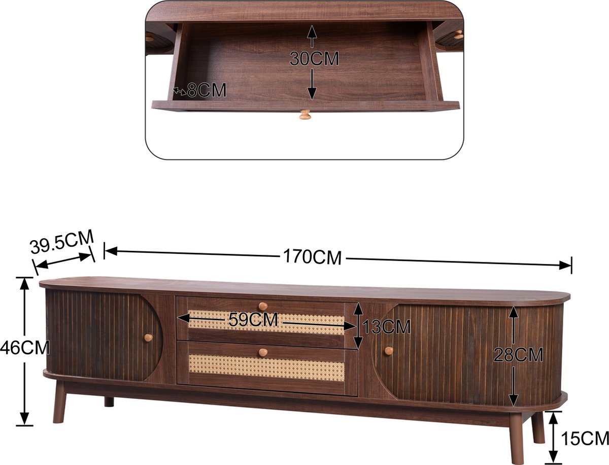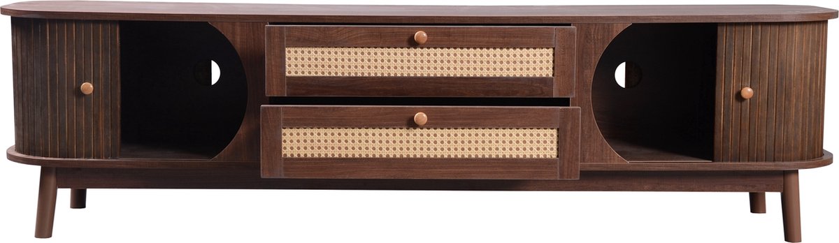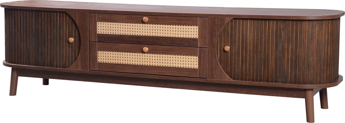 Ontdek het Merax Rotan TV Meubel: stijlvol hout, schuifdeuren en lades voor extra opbergruimte. Perfect voor een retro look! Bestel nu bij Trending.nl!