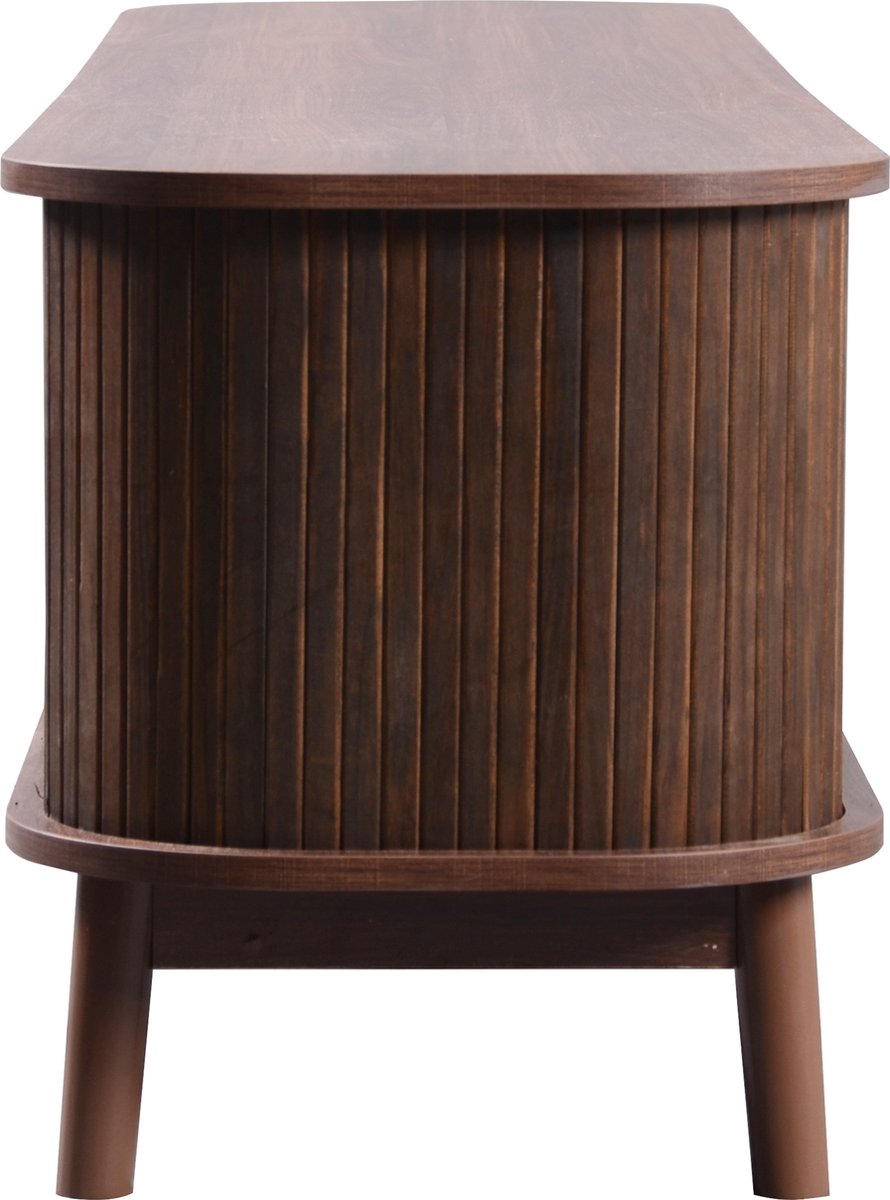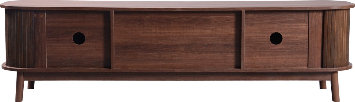 Op zoek naar een eyecatcher voor je woonkamer? Dit Merax Rotan TV Meubel in warm bruin hout geeft direct een retro sfeertje met een moderne twist. Het combineert een natuurlijke uitstraling met praktisch design, dankzij de schuifdeuren en handige lades. Of je nu je tv-decoder, afstandsbedieningen of andere spullen wilt opbergen, deze kast biedt ruimte zat en houdt je woonkamer netjes.