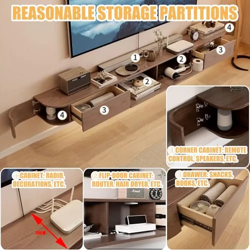 Het hangende ontwerp van dit zwevende rek zorgt niet alleen voor een strakke look, maar maakt schoonmaken eronder ook superhandig. Geen stofnesten meer! Gebruikers waarderen de stevige constructie en het eenvoudige montageproces, al kan het even puzzelen zijn om alles perfect recht te hangen. Dit meubel past perfect in de woonkamer, slaapkamer of zelfs eetkamer.