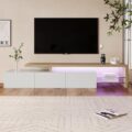 Op zoek naar een TV-meubel dat niet alleen praktisch is, maar ook je interieur een flinke boost geeft? Dit glanzende witte televisiemeubel met LED-verlichting is precies wat je nodig hebt. Met een breedte van 200 cm biedt het ruimte aan zelfs de grootste flatscreens, terwijl de glazen planken en drie deuren je spullen netjes opbergen. De LED-verlichting zorgt voor een moderne vibe, perfect voor gezellige avonden in de woonkamer of slaapkamer.