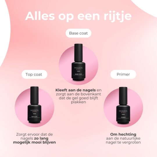 Wil je thuis nagels die eruitzien alsof je net uit de salon komt? Dan is het Moods Gellac Starterspakket jouw nieuwe beste vriend. Deze complete set bevat alles wat je nodig hebt voor een professionele manicure: van primer en base coat tot top coat en zelfs een handige LED-lamp. Met 8 ml per flesje heb je genoeg product voor talloze looks.