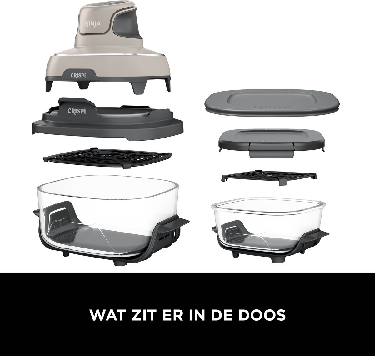 De Ninja CRISPi™ verandert de regels van de keuken. Dankzij de unieke glazen TempWare-schalen bereid je jouw eten niet alleen, maar serveer je het ook direct op tafel. Klaar met eten? Klik het meegeleverde deksel erop en schuif het zo de koelkast in. Geen extra bakjes, geen rommel op het aanrecht en vooral: veel minder afwas!