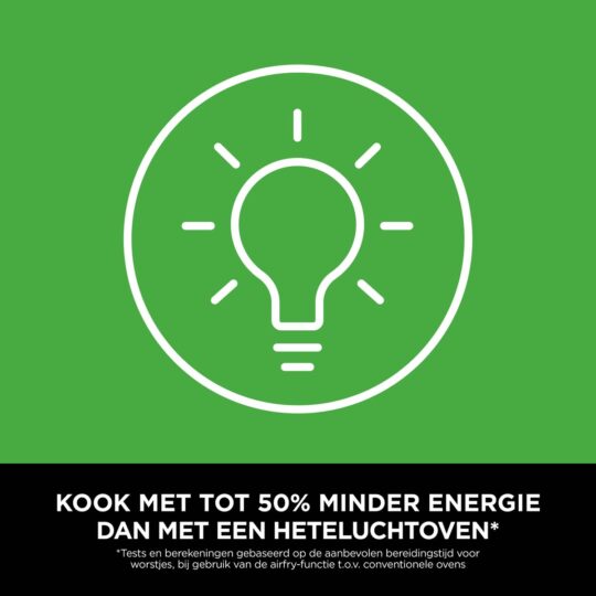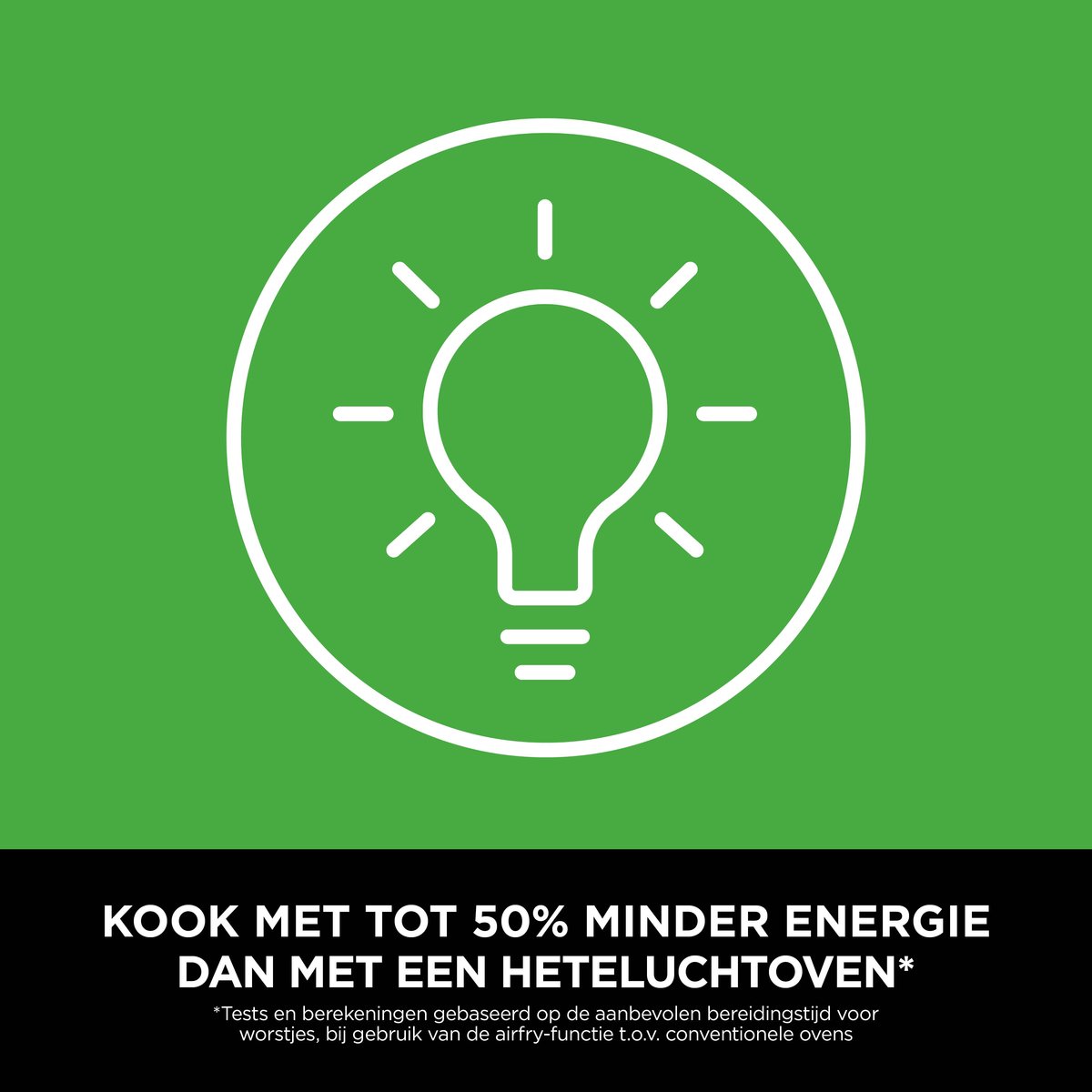 Woon je in een studio, heb je een kleine keuken of wil je een airfryer mee naar de camping? De Ninja CRISPi is extreem compact en alle onderdelen passen in elkaar, waardoor hij nauwelijks ruimte inneemt in je keukenkastje. Bovendien verbruikt hij tot wel 50% minder energie dan een traditionele heteluchtoven.