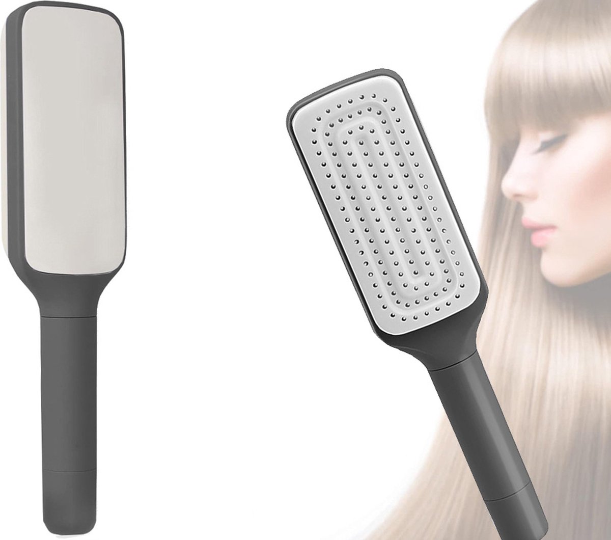Onze haarborstel is ontworpen met uw gemak in gedachten. Dankzij het ingebouwde zelfreinigende mechanisme verwijdert u ongewenste haren en vuil met elke borstelbeweging, waardoor de borstel altijd schoon en klaar voor gebruik blijft.Met e…