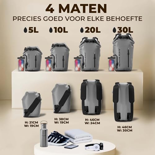 Houd je spullen droog met de Nordlight Dry Bag 30L. Perfect voor strand, kanoën en SUP. Inclusief telefoonhoes en schouderriem. Bestel nu bij Trending.nl!
