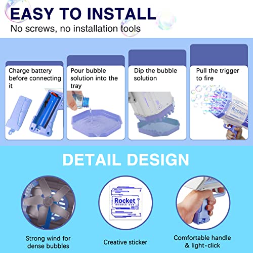 Deze bubbelblazer is oplaadbaar, dus geen gedoe met batterijen die steeds leeg zijn. De bijgeleverde oplossing zorgt ervoor dat je direct aan de slag kunt. Gebruikers zijn dol op hoe makkelijk deze machine werkt, al vinden sommigen het reservoir wat klein voor langdurig gebruik. Maar hé, even bijvullen en de pret gaat gewoon verder!