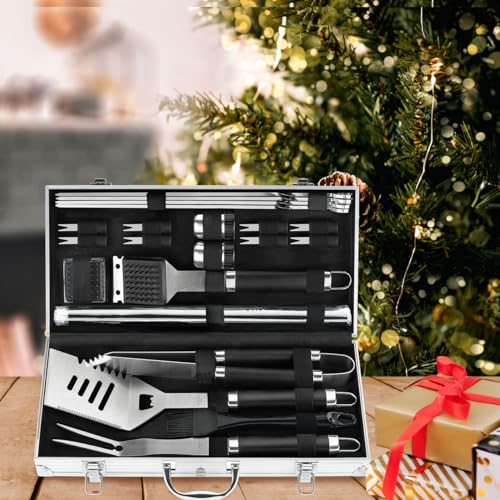 Wat maakt deze BBQ-toolkit zo speciaal? Alles is gemaakt van duurzaam roestvrij staal, dus geen gedoe met roest na een regenbuitje. De set bevat tangen, spatels, borstels en meer – 21 tools in totaal. Gebruikers zijn vooral blij met de stevige grip en het gemak van de opbergkoffer.