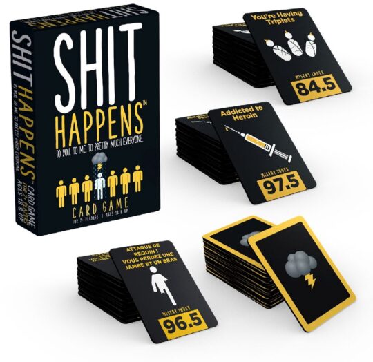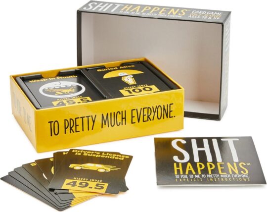 Ontdek Shit Happens 18+, het hilarische Engelstalige kaartspel voor volwassenen. Perfect voor feestjes en foute humor. Bestel nu bij Trending.nl!