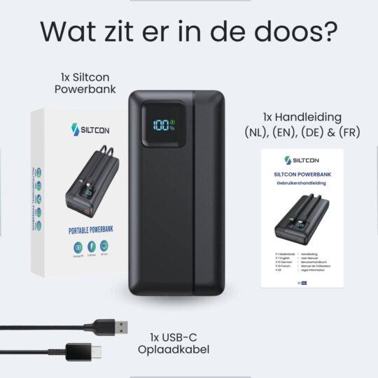 Geen lege telefoon meer op het verkeerde moment! Met de Siltcon® Powerbank 30000 mAh heb je altijd een flinke dosis extra stroom bij de hand, waar je ook bent. Of je nu onderweg bent, op kantoor zit of thuis ineens zonder power komt te zitten, deze krachtpatser zorgt ervoor dat je devices in no-time weer klaar voor gebruik zijn. Superhandig voor smartphones, tablets en zelfs kleine laptops!