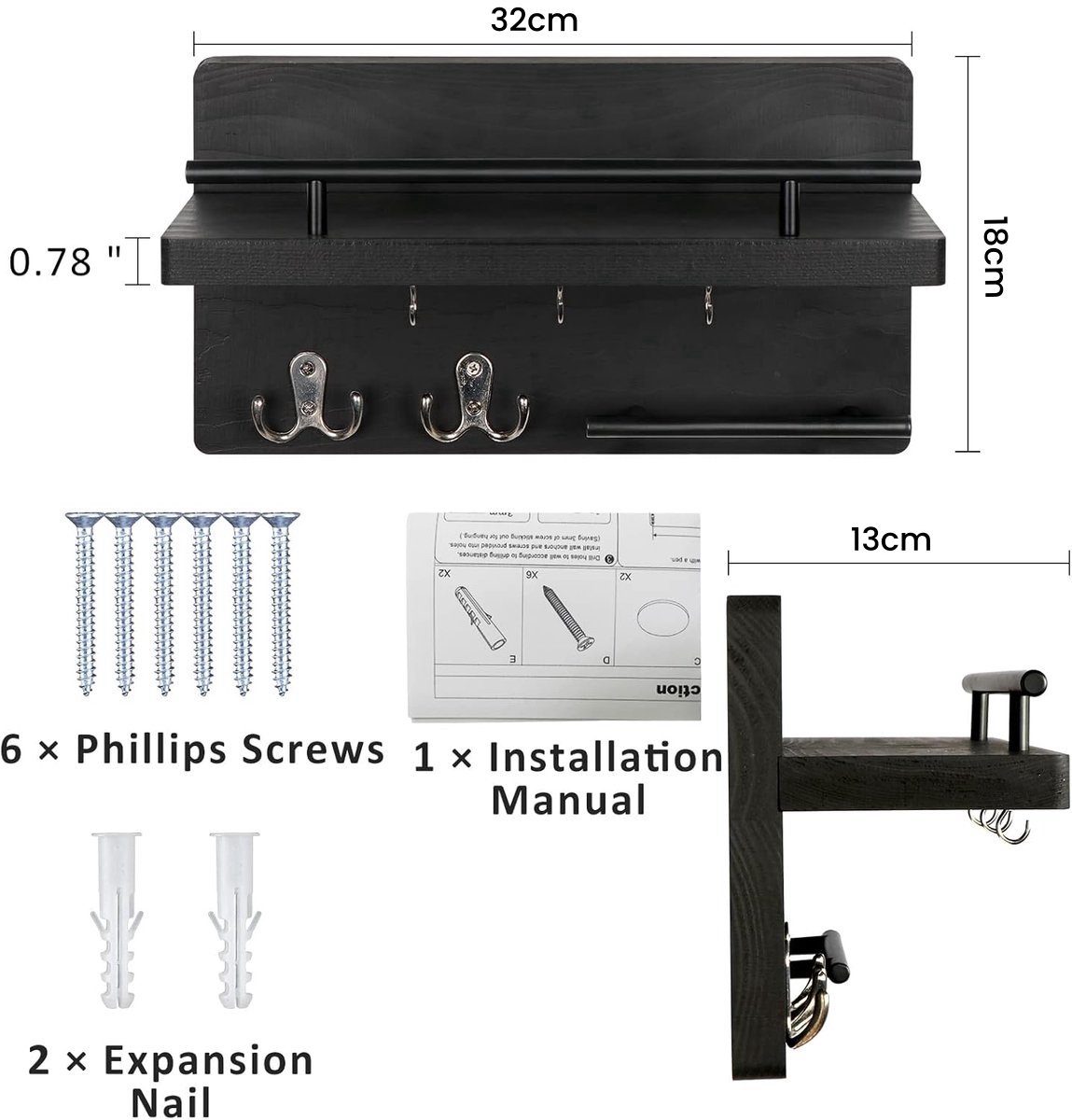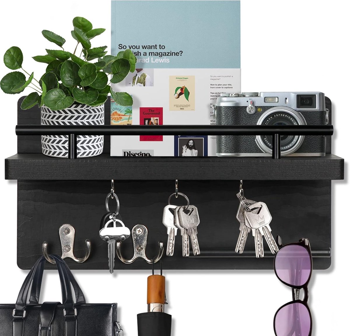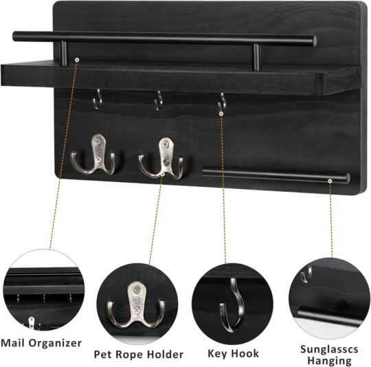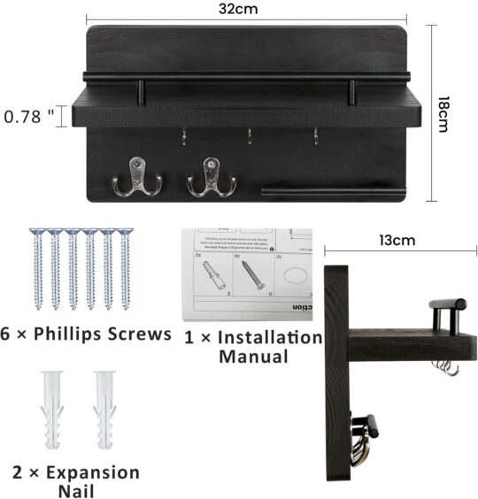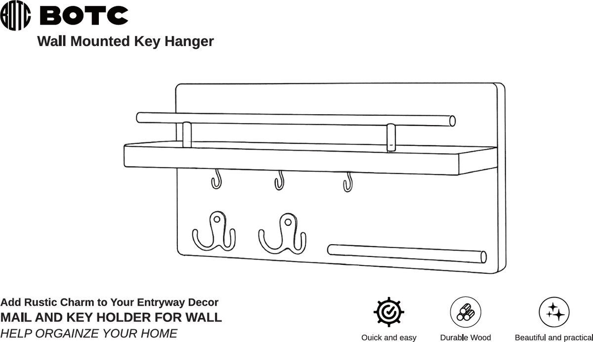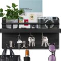 Ben je ook altijd je sleutels kwijt of slingeren er overal brieven rond in de hal? Dit BOTC sleutelrekje met postvak is dé oplossing voor een opgeruimde entree. Het combineert een strak, zwart houten design met praktische functionaliteit. Hang je sleutels aan een van de 7 stevige haken, leg je post in het handige vak en gebruik de legplank voor kleine spulletjes zoals je zonnebril of handschoenen. Superhandig!
