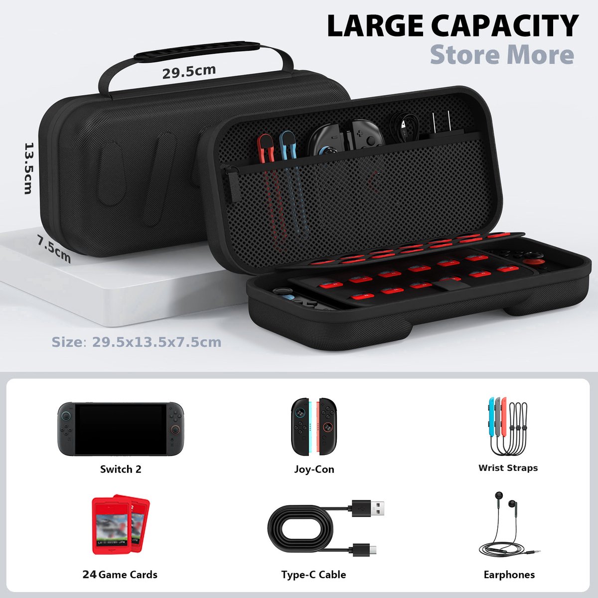 Met de Sounix Case hoef je je geen zorgen te maken over je gear. Alles past erin, blijft beschermd en ziet er nog stijlvol uit ook. Een must-have voor elke Switch-liefhebber!