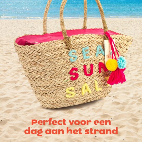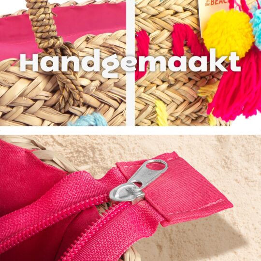 De zon op je huid, een briesje door je haar en… deze prachtige strandtas aan je arm! Gemaakt van gevlochten riet en zeegras, is deze handgemaakte shopper niet alleen een eyecatcher, maar ook superpraktisch. Of je nu naar het strand gaat of een rondje markt doet, met deze tas heb je ruimte genoeg voor al je essentials. De stevige rits houdt alles veilig binnen, zelfs als je hem volpropt met handdoeken of boodschappen.