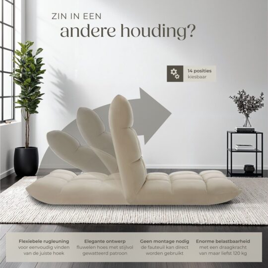 Met deze veelzijdige vloerstoel creëer je in no-time jouw eigen chillhoek. Perfect voor een serie-marathon of een zen-momentje.