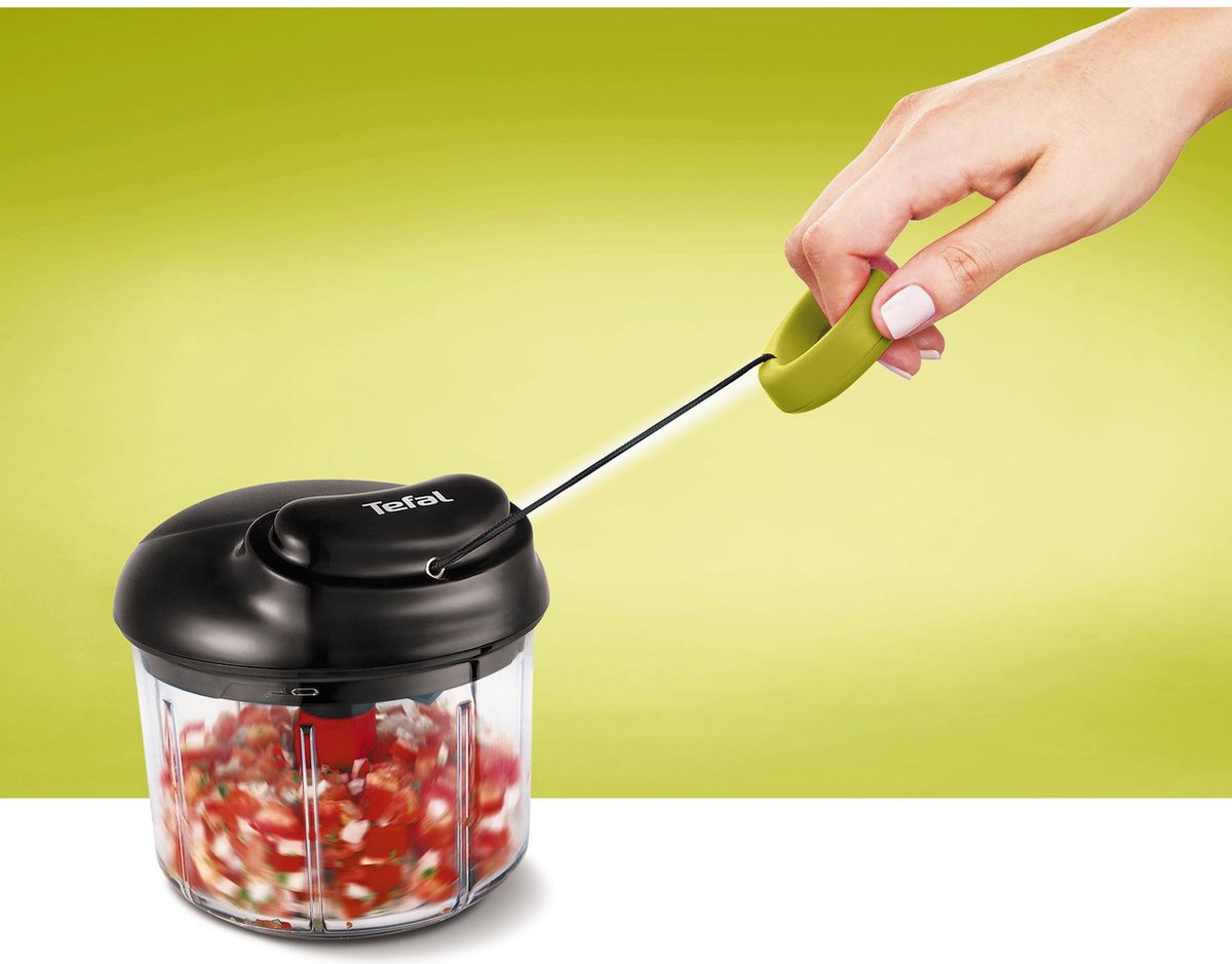 Ben je klaar met eindeloos snijden en hakken in de keuken? De Tefal 5 Second Chopper is dé oplossing voor iedereen die tijd wil besparen. Deze handmatige hakmolen van 900 ml hakt groenten, noten en kruiden in een paar seconden fijn. Geen gedoe met elektriciteit, gewoon aan het koord trekken en klaar! Een superhandige keukenhulp die niet mag ontbreken.