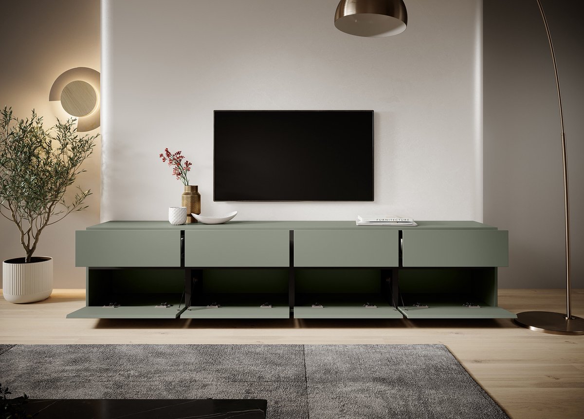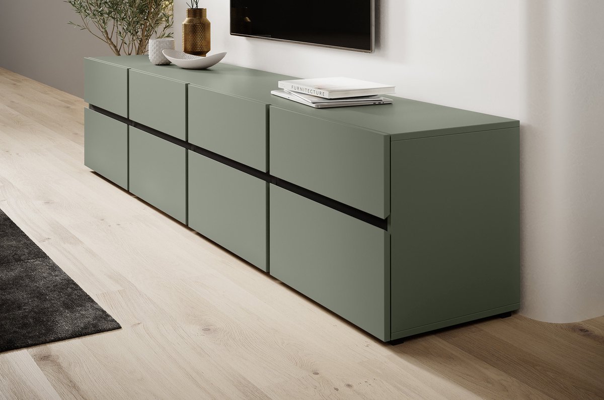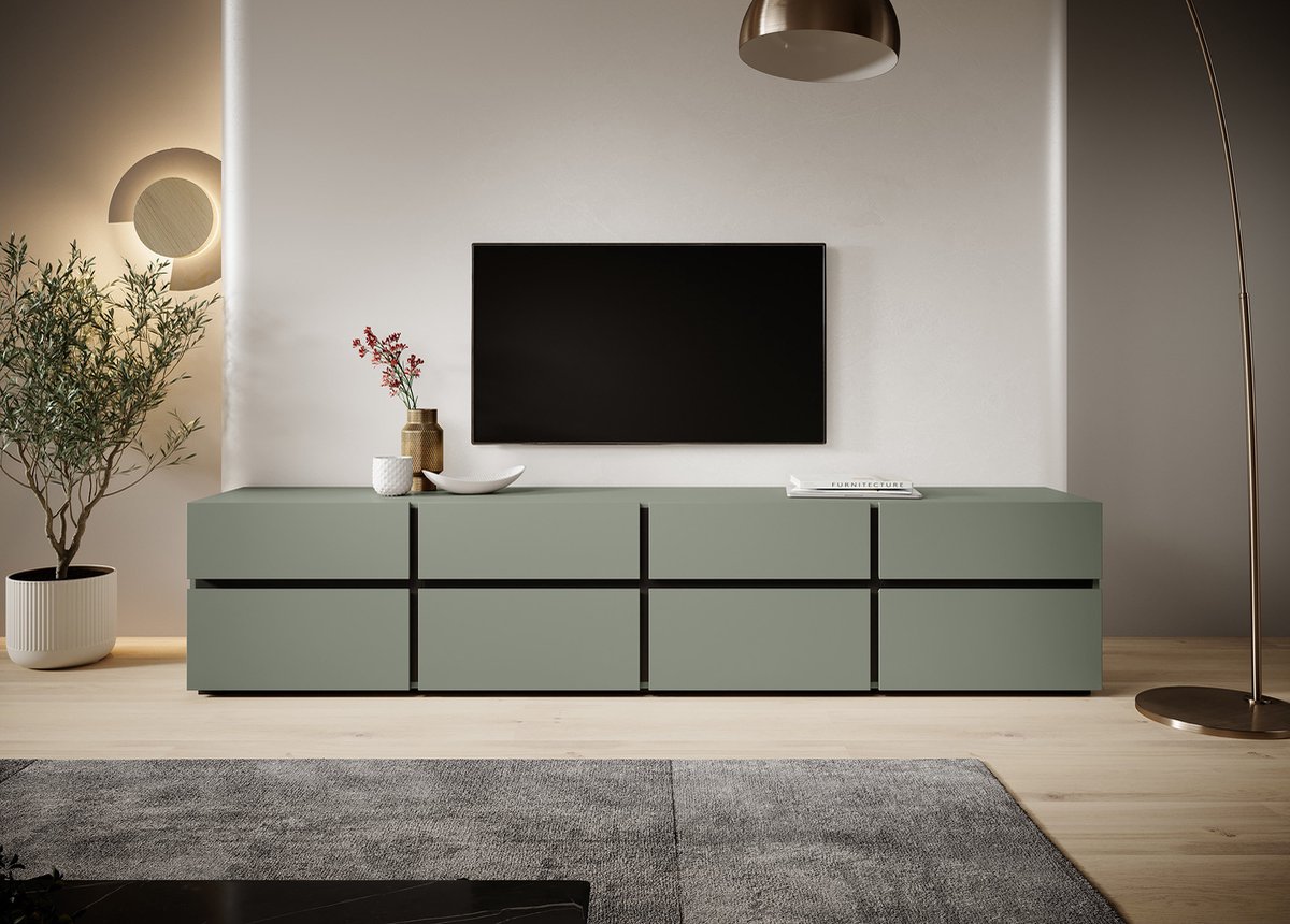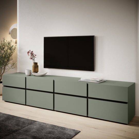 Ontdek het stijlvolle TV-meubel Cainan in groen (225 cm). Perfect voor een moderne woonkamer met veel opbergruimte. Bestel nu bij Trending.nl!