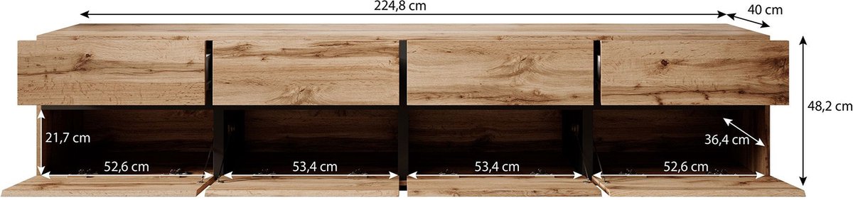 Wat dit TV-meubel zo fijn maakt, is de slimme indeling. Gebruikers waarderen de ruime opberglades en open vakken waarin je gemakkelijk je mediaspullen of decoratie kwijt kunt. Een klein minpuntje? Sommigen vinden de montage even puzzelen, maar met een beetje geduld staat hij stevig op zijn plek.