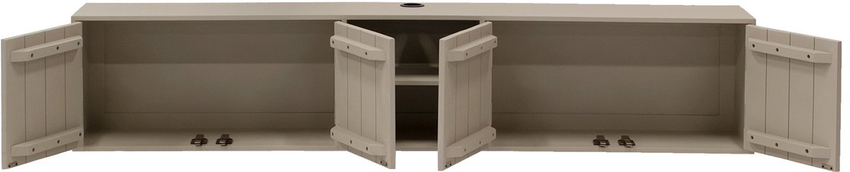 Op zoek naar een tv-meubel dat zowel praktisch als prachtig is? Dit taupe mangohouten exemplaar van Loiza steelt de show in je woonkamer. Met zijn warme, natuurlijke uitstraling en strakke lijnen past deze kast perfect in een modern of boho interieur. De afmetingen van 200x30x40 cm zorgen voor genoeg ruimte om je tv, mediaspelers en decoratie neer te zetten of op te bergen achter de vier deuren.