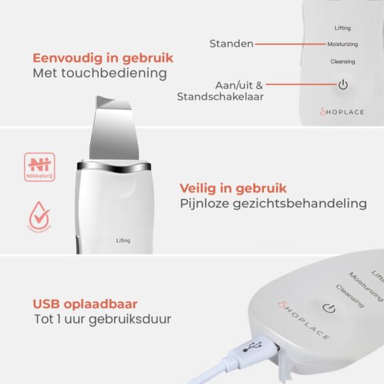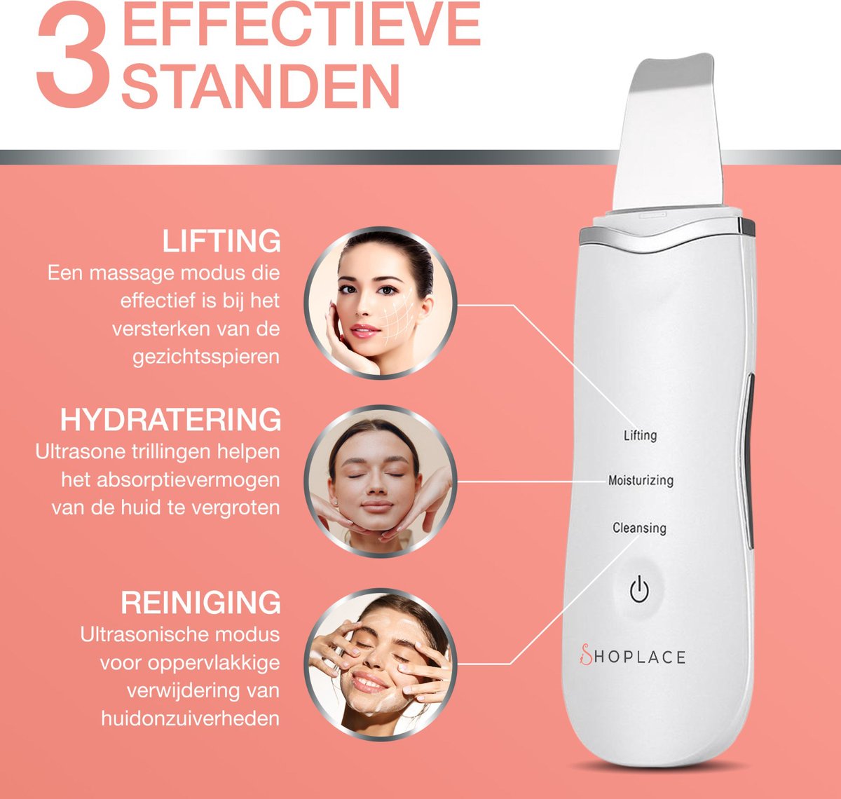 Op zoek naar een stralende, gezonde huid zonder dure salonbehandelingen? Het Shoplace Ultrasoon Huidverjongingsapparaat is jouw nieuwe beste vriend. Dit handige apparaat reinigt je gezicht diep, verwijdert mee-eters en puistjes, hydrateert je huid en helpt zelfs rimpels te verzachten. Perfect voor een snelle opfrisbeurt thuis, met resultaten die je direct ziet. Of je nu last hebt van acne of gewoon je huid wilt verstevigen, deze skin scrubber doet het allemaal.