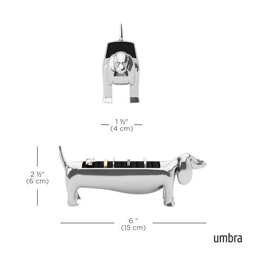 Organiseer je ringen met de stijlvolle Umbra Dachsie houder in chroom. Uniek teckel-design en compact formaat. Bestel nu bij Trending.nl!