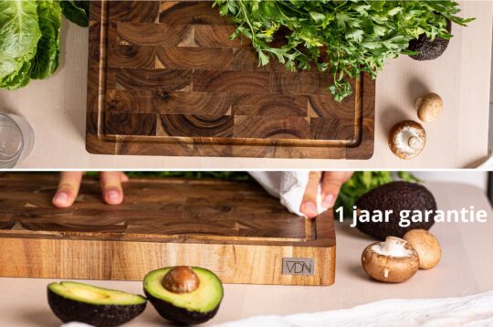 Wat deze borrelplank extra fijn maakt, is de sapgeul. Geen geknoei meer met sappen die over de rand lopen – alles wordt netjes opgevangen. Gebruikers zijn dol op het stevige kopshout en het natuurlijke design dat in elke keuken past. Perfect als snijplank, maar ook als stijlvolle serveerplank voor hapjes.